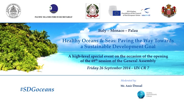New York, September 27, 2014: The Global Partnerships Forum was privileged to participate at the high-level event Healthy Oceans & Seas: Paving the Way Towards a Sustainable Development Goal, which took place on the occasion of the 69th session of the UN General Assembly. This special event was co-hosted by the Permanent Missions of Italy, Monaco and Palau, in cooperation with the UN Department of Public Information, and was moderated by GPF Chairman, Mr. Amir Dossal.